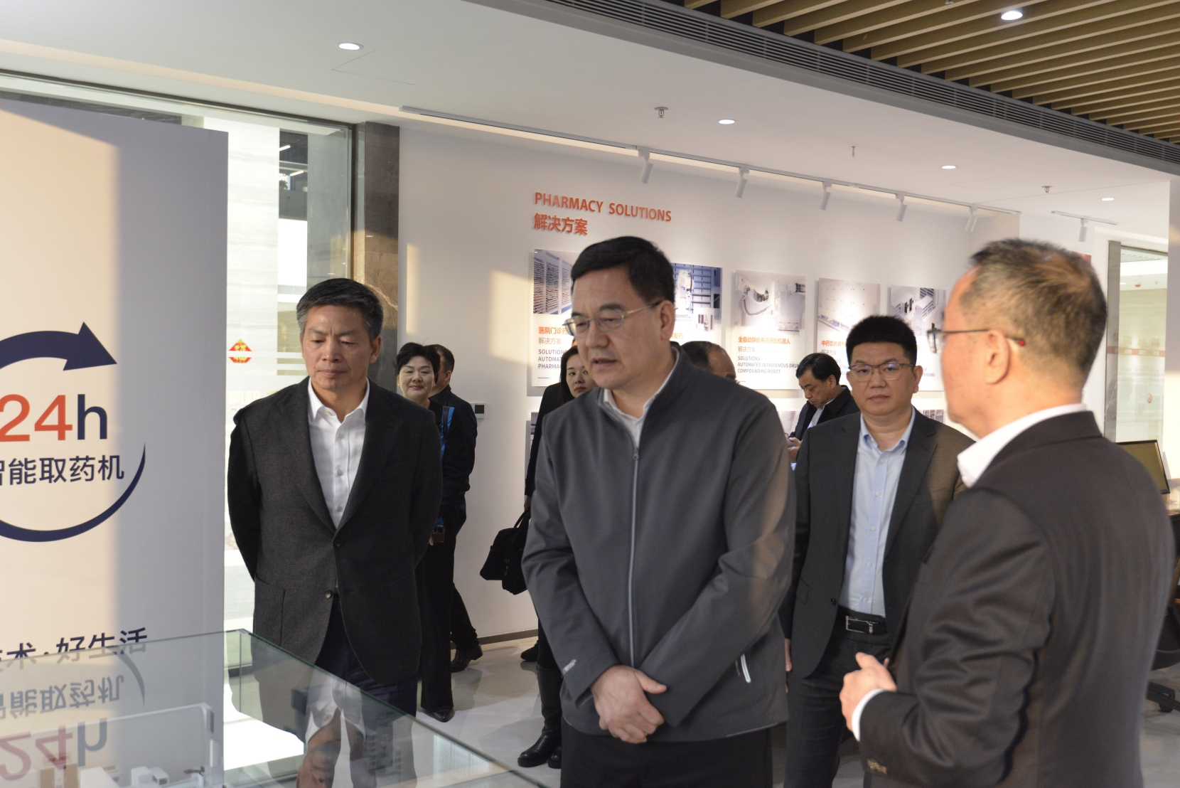 戴建伟董事长向湖北省领导团队详细介绍了健麾信息在多个领域的尖端技术和创新产品,包括门诊药房自动化、静配用药调配中心自动化、全自动静脉用药调配机器人、中药发药机以及智慧医院物流传输系统等。他特别强调了机器人与AI识别技术在健麾信息智慧医疗解决方案中的重要作用,并指出这些技术的运用能够显著提升医疗服务的效率与质量,为患者带来更为安全、便捷的医疗体验。此外,戴董事长还介绍了健麾信息的海外战略布局,致力于将智慧医疗创新产品推向国际市场。